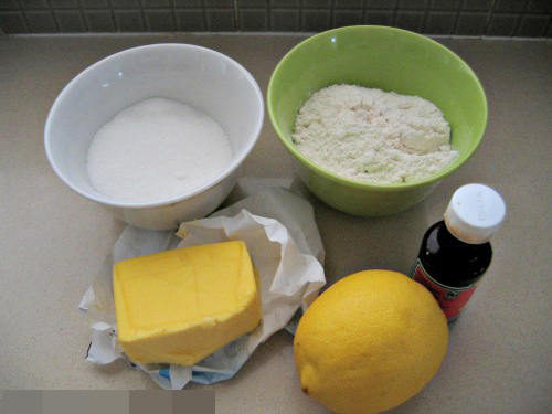 - Cho bơ, đường, bột mỳ, vani và vỏ chanh vào một máy xay, xay mịn, tơi xốp.